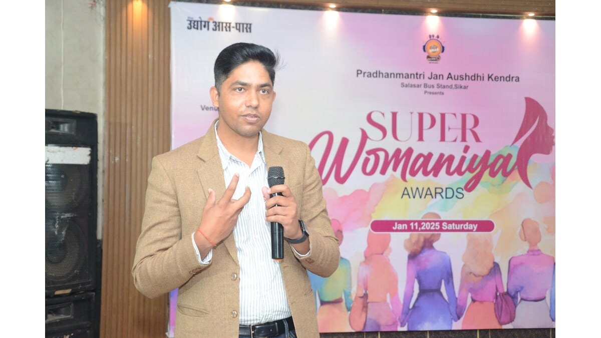 मौक था होटल रोयल इन में आयोजित सुपर वूमनिया अवॉर्ड फंक्शन का, जहां नारी शक्ति का अद्भुत संगम देखने को मिला। 89.6 एफएम सीकर और दैनिक उद्योग आसपास के संयुक्त तत्वावधान में शनिवार को सुपर वूमनिया अवॉर्ड कार्यक्रम आयोजित किया गया। जिसमें समाज के विभिन्न क्षेत्रों में उल्लेखनीय कार्य करने वाली महिलाओं को सम्मानित किया गया। कार्यक्रम में 54 नारी शक्तियों को सुपर वूमनिया अवॉर्ड से नवाजा गया। इन महिलाओं ने समाज, शिक्षा, स्वास्थ्य, व्यवसाय और कला जैसे क्षेत्रों में अपना अमूल्य योगदान देकर समाज को नई दिशा दी। ये महिलाएं न सिर्फ हमारे लिए प्रेरणा हैं बल्कि समाज के लिए भी एक मिसाल हैं। कार्यक्रम को प्रधानमंत्री जन औषधि केंद्र, सालासर बस स्टैंड, सीकर ने प्रस्तुत किया था।